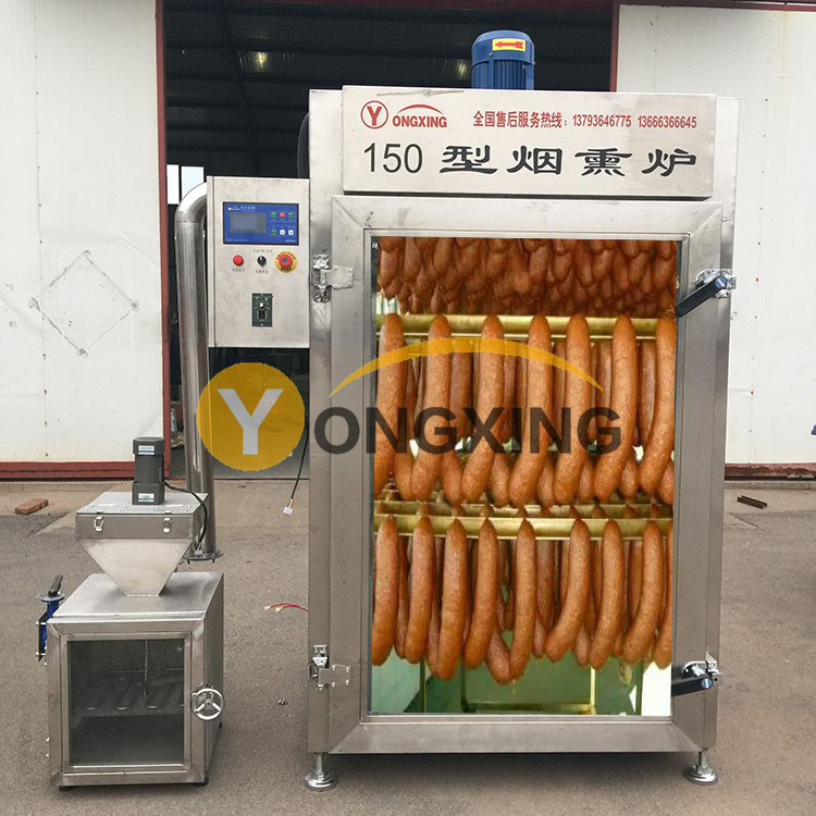 4.烘烤。將紅腸放進烘箱內烘烤,烘烤溫度掌握在65~80℃,烘烤時間按腸衣細粗分別為0.5~1小時。烘烤標準以腸衣呈干燥,肉餡呈紅色為佳
